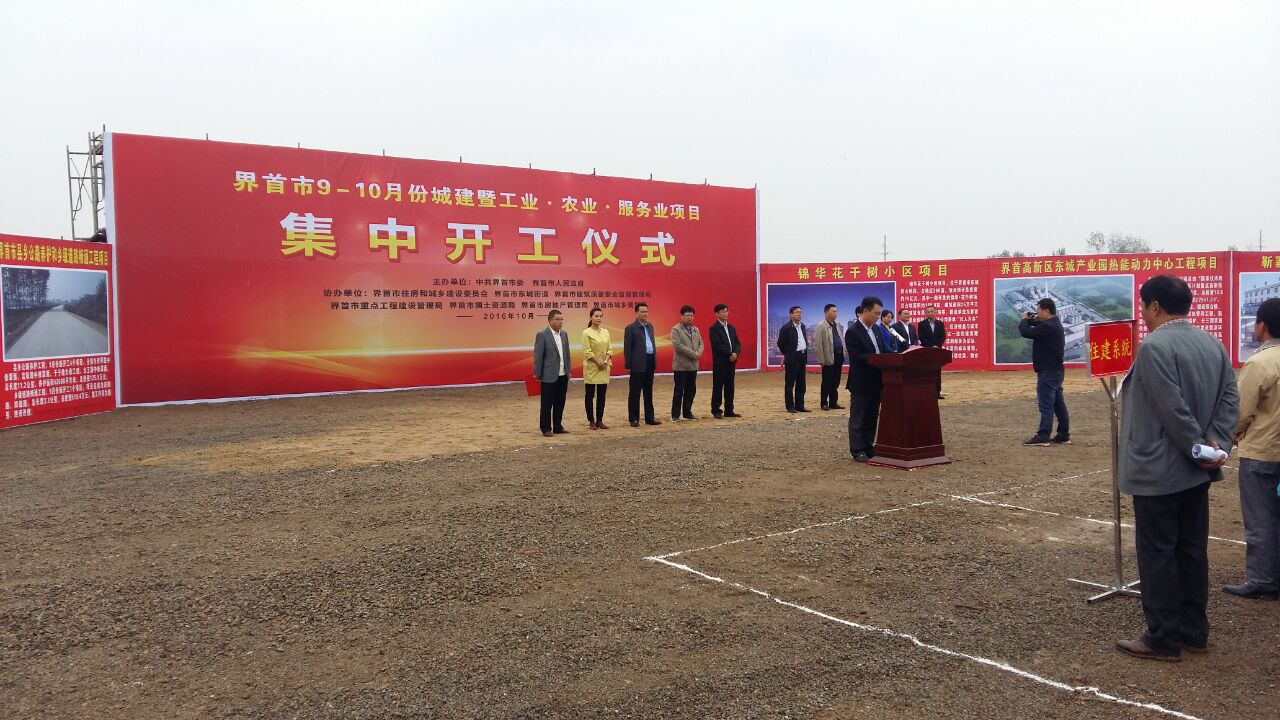 金秋十月,丹桂飄香!10月13日,界首市9—10月份項目集中開工儀式在我司界首錦華•花千樹小區(qū)項目隆重舉行。界首市委書記徐會東、副書記、市長何逢陽、建委主任徐新士等領(lǐng)導(dǎo)出席開工儀式。 界首市委書記徐會東主持集中開工儀式。他指出,今年以來,界首市已經(jīng)舉行了7次項目集中開工儀式,目的就是始終保持戰(zhàn)略定力、發(fā)展定力,持之以恒推動項目謀劃實(shí)施,始終保持項目建設(shè)高潮,進(jìn)一步激發(fā)全市干部群眾的信心和勇氣,進(jìn)一步激勵全市干部群眾把心沉下去,把身子彎下去,把頭低下去,把心思和精力集中到抓工作、干事業(yè)上來,推動經(jīng)濟(jì)社會又好又快發(fā)展。界首市長何逢陽在致辭中說,“百日攻堅”行動開展以來,全市項目建設(shè)各項工作步伐明顯加快,部門協(xié)作意識明顯增強(qiáng),工作作風(fēng)明顯轉(zhuǎn)變,工作機(jī)制逐步完善,“百日攻堅”行動取得了良好效果。 錦華•花千樹小區(qū)項目占地面積300畝,建筑面積25萬m2,項目總投資約15億。界首市項目集中開工儀式選址在此進(jìn)行,體現(xiàn)了市里對該項目的重視。集團(tuán)公司對此次開工儀式高度重視,選派精兵強(qiáng)將,調(diào)動精干力量,前期施工時對現(xiàn)場進(jìn)行合理規(guī)劃,依照標(biāo)準(zhǔn)、規(guī)范要求,重點(diǎn)對文明施工、安全生產(chǎn)、揚(yáng)塵治理、質(zhì)量驗收等方面嚴(yán)格控制,使得現(xiàn)場管理井然有序。通過此次活動,進(jìn)一步彰顯了項目管理水平,同時也為項目的創(chuàng)建工作奠定基礎(chǔ)。