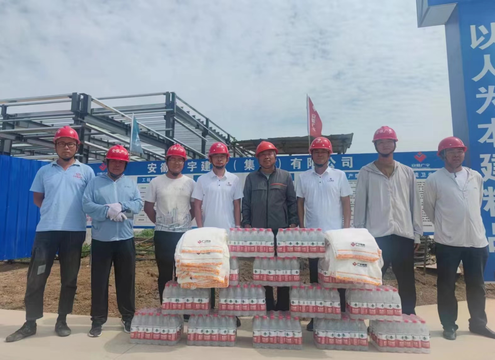 驕陽似火,酷暑難當(dāng)。連日來的高溫天氣,考驗(yàn)著奮戰(zhàn)在一線的工人兄弟們的同時,也牽動著公司領(lǐng)導(dǎo)們的心。7月11日,董事長張濤一行,為奮戰(zhàn)在作業(yè)一線的員工送來了礦泉水等防暑降溫物品,把清涼送到了生產(chǎn)一線,把關(guān)懷送到員工心坎。與員工親切交談時,叮囑大家在保證安全生產(chǎn)的同時,還要注意自己的身體健康,防止高溫中暑,并要求項目部落實(shí)好防暑降溫措施,在工作的同時要保證員工的身體健康。 ?